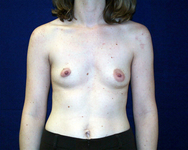 This woman has had a few pregnancies and breast feeding experiences. Note how her natural breast shapes and tendencies persist after her breast augmentation. Also note how her breast implants significantly improve her breast shape and nipple positions and make her areola size asymmetries less noticeable.