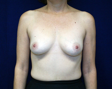 She has lovely shaped breasts. They are slightly out pointing but the additional volume provided by breast implants restores her breasts to a full naturally looking aesthetic.