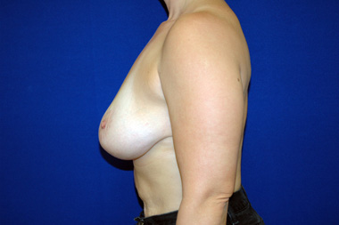 This modest sized woman requested a rejuvenation of her breast mounds and did not want breast implants. Notice the repositioning of her nipples to a higher point on the breast mounds.