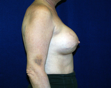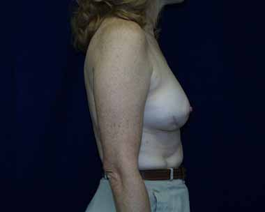 This woman sought out plastic surgeon, Dr. Michael J. Brown to attempt to improve her breast cancer reconstruction result. She had undergone 4 previous reconstructive surgeries. She requested an improvement in both breasts. She had a breast lift on the right and a breast implant exchange and scar tissue revision on the mastectomy side. She was very pleased with her result.
