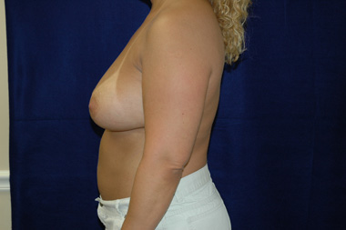 This woman had her breast augmentation done elsewhere and was very disappointed with how her breasts settled. They were too high and she wanted them lower. She developed a double bubble after the fold lowering to place the breast implant in a position that she now loves. She was not concerned about this finding that is only visible with her arms over her head.