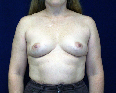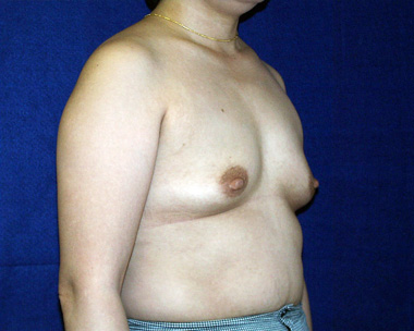 This woman with a wide and broad rib cage carries her breasts off towards her sides. Note how her natural breast and body features are maintained after her breast augmentation.