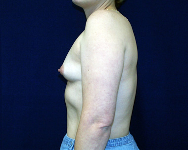 She has nipple and breast volume asymmetries as well as inframammary fold asymmetries. She has had a nice breast augmentation result, note that she does have some upper pole fullness on the profile views. This can occur especially when the woman has tight tissues in her lower breast.