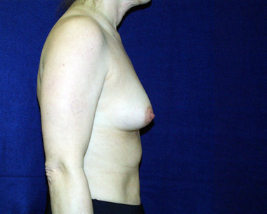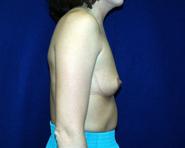 She has nipple position asymmetries with the right nipple pointing down and out. Note that on her after breast augmentation photos this characteristic still exists and that she has some upper pole fullness in her right breast in profile view.