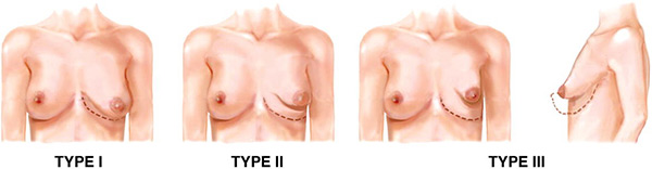 The more severe forms, type 3 will have very tight constricted breasts in the bottom part of the breast. The more severe forms of constricted breast development will also have wide distorted areolar tissues with breast gland actually pushing out through the areola. This breast tissue pushing out through the areola gives the tuberous breast deformity its distinctive look.