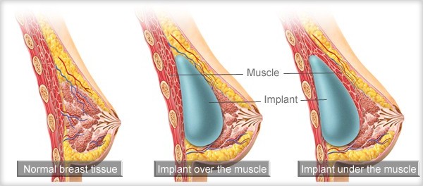 breast implants positionsThis image demonstrates the breast implant above the muscle and below the muscle without the breast gland being present. The second and more popular primary breast implants positions is the below the muscle. It is called ‘below the muscle’ or ‘below the pectoral muscle’, or ‘sub pectoral’ breast implant position because it is just that. Again, ‘sub’ means below. The good thing about using the muscle as the main defining point is that a breast implants positions is then it is either ‘above’ or ‘below’ the muscle. If the below prefix ‘sub’ is used, then a breast implant is either ‘sub glandular’ or ‘sub muscular’ to describe these two major breast implants positions.